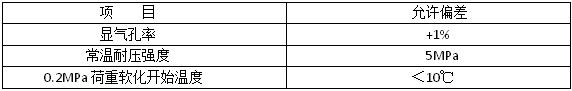 抽樣、驗收按GB/T10325進行,顯氣孔率、常溫耐壓強度、荷重軟化溫度為驗收檢驗項目。需要復驗時,單值允許偏差應符合下表的規定。