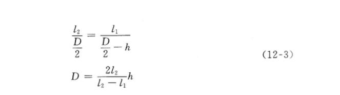 根據如圖12-1所示幾何條件,耐火磚的曲率直徑D和途中所示耐火磚大頭尺寸l2,耐火磚小頭尺寸l1,耐火磚的高度h之前滿足以下關系。