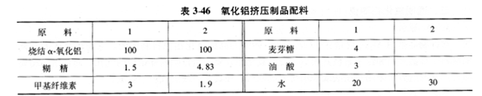 氧化鋁擠壓制品的配料見表3-46