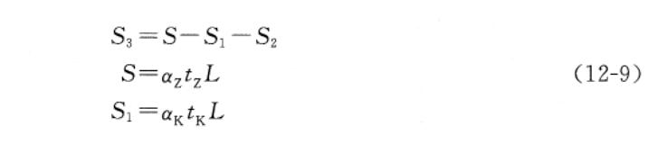 由圖12-8可知:耐熱鋼托磚板托住托磚,托磚托住耐火磚和隔熱磚,耐火磚和上一塊托磚板之間的縫隙中塞有輕質(zhì)耐火物。這就吸收了熱膨脹,防止了直墻的損壞。根據(jù)式(12-1),可以推算得出膨脹縫的高度S3應滿足下式。
