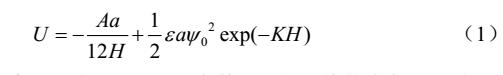 式中,A 為 Hamarker 常數(shù);a 為顆粒的半徑;H 為顆粒間的最短距離;ε 為溶液的介電常數(shù);Ψ0 為顆粒的表面電位;K 為 Debye-Huchkel 參數(shù),K-1 具有長(zhǎng)度的因次,通常稱 K-1 為雙電層厚度。