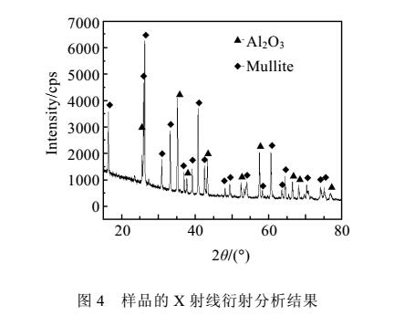 X 射線衍射儀分析材料的物相組成結(jié)果表明:樣品中含有莫來(lái)石相 60%、剛玉 20%~30%、金紅石 3%、玻璃相 5%~10%。