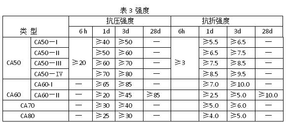 各類型鋁酸鹽水泥各齡期強度指標應符合表3 的規定