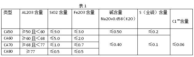 鋁酸鹽耐火水泥的化學成分以質量分數計,數值以% 表示,指標應符合 表1的規定