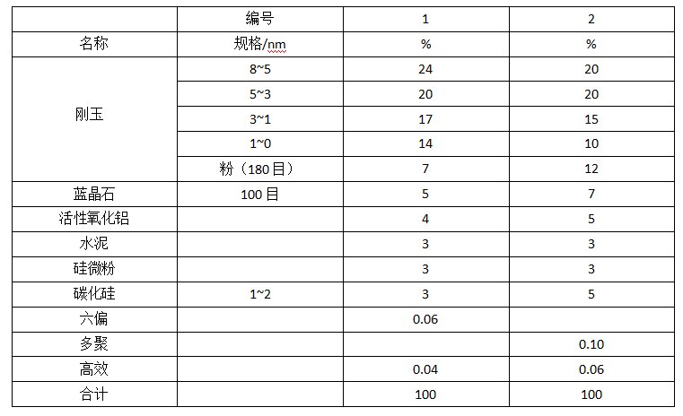 氧化鋁微粉對于確定澆注料的澆注性能及高溫下莫來石化的程度也十分重要。氧化鋁和二氧化硅的細粉在1 300〜1 400 "C發生反應,形成莫來石(如果CaO含量很低),莫來石化決定高溫強度的發展,增強了剛玉質耐火澆注料的高溫熱機械性能。氧化鋁微粉的類型(如粒度、結晶大小等)對于澆注料的性能及其它性能也具有很大的影響。以二氧化硅微粉、活性氧化鋁微粉、純鋁酸鹽水泥及添加劑組成的結合系統,根據使用條件的不同,配加高鋁剛玉粉、藍晶石粉,以剛玉作骨料,對各組份的加入量精心的試驗調整,做出以上2組數據。根據其結果,第2組的配比更為合理。