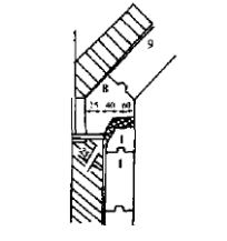 在第二十一層的爐墻剛玉磚為加工磚,切除磚的上半部,切除的高度大小要保證拱角磚面下留有40mm的膨脹縫,切好的1#剛玉磚在上后方還要切成斜坡,坡度約保證與拱角磚的斜面相距25mm,見圖4。