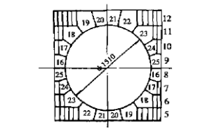 在第六層爐墻磚,緊貼22#砌煙道口23#磚,緊貼19#煙道口磚砌18#磚,檢査23#、18'磚的高度和中心角度。然后從兩邊貼砌1#爐墻磚(第六層)。在第七層爐墻磚貼23#、18#磚砌24#、17#磚,在第八層爐墻磚貼24#、17#磚砌25#、16#磚。在第八層爐墻磚和25#、16#煙道磚的平面上,是煙道口的水平中心線,要校正中心點和煙道口的圓度,然后支撐好煙道口胎模,以備砌煙道口上部磚。在第九~十二層分別砌16#、25#磚,17#、24#煙道口磚,18#、23#煙道口磚,19#20#、21#、22#四種煙道口磚,磚長與下半圓交錯對應。