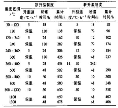 表2 DMT殘渣爐內襯烘爐升溫制度