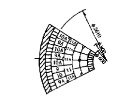 在拱角磚上面先定位砌不帶孔9#、10#剛玉磚,然后分別在兩邊砌9A#、10A#剛玉磚。要檢査和保證9、10、9A、10A四種磚的斜度(測內弦長),保證9A#、10A#相砌后預留孔的中心與圖紙要求相一致。