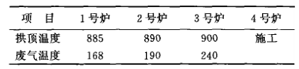表2加熱爐拆除后各熱風爐拱頂、廢氣溫度,℃