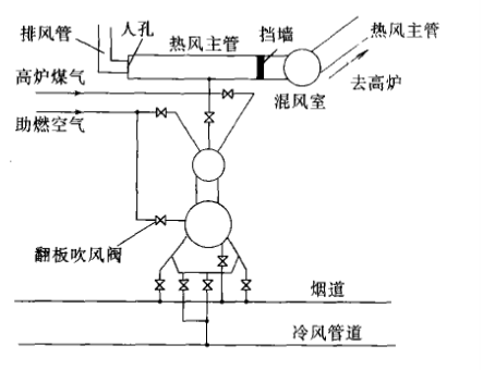 (5) 配置硅磚熱風爐的高爐應有特設的休風倒流裝置,嚴禁用熱風爐倒流。