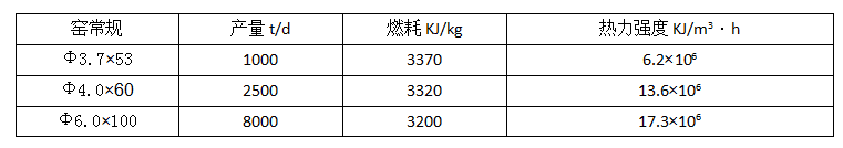 表1 新型干法窯的截面熱力強度