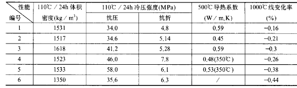 輕質(zhì)高強(qiáng)隔熱耐火澆注料體積密度小于1600kg/m3,110°C /24h烘干后,抗壓強(qiáng)度大于30MPa,1000℃燒后線收縮率小于0.5%。