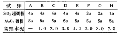 對(duì)加有SiO2、Al2O3微粉的高鋁質(zhì)低水泥自流澆注料中所涉及的化學(xué)過(guò)程。研究了SiO2、Al2O3微粉、高鋁水泥含量、加水量對(duì)低水泥耐火澆注料物理性能的影響。分析了分散劑、促凝劑、延遲硬化劑在低水泥自流耐火澆注料中的作用。
