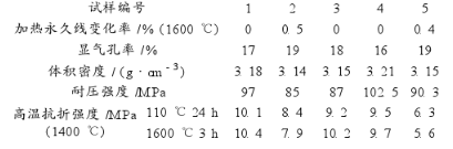 表2 無尖晶石原料的試樣于1600℃ 3h燒后的性能指標