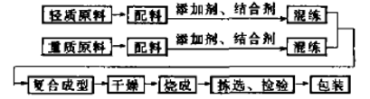 輕重質復合保溫耐火磚試生產工藝流程如下: