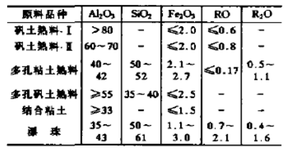 從經濟和輕重質之間的牢固結合考慮,經試驗,采用化學組成接近粘土質的配料是可行的。輕質部分要求有好的隔熱效果,熱導率應≤0.5W/(m·K)。