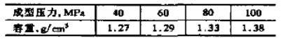 由表1可以看出,成型壓力從40MPa增加到100MPa,容重增加0.lg/cm3左右。為了增加結合強度,調整添加劑加入量,采用80MPa壓力為宜。