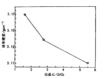 適量氧化鋯添加劑有補強的作用,可以提高澆注料的耐壓強度,試樣的體積密度隨著ZrO2加入量的增加而增大,試樣的顯氣孔率隨著ZrO2加入量的增加而減少。
