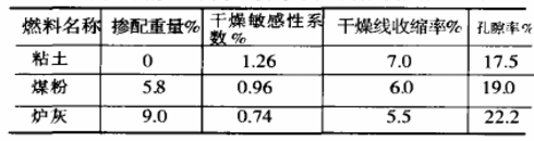 從上表試驗結果中可以看出如下規律:(1)隨燃料摻入量的增加,粘土塑性指數也隨之降低,兩者為反比關系。(2)塑性指數的降低率與粘土原有的塑性有關,粘土塑性越高,則受摻入燃料的影響越大,即降低率越高。(3)塑性指數的降低率和燃料的種類有關,燃料中的灰分越高影響越大。綜上所述,可塑性高的粘土,適合選用熱值低的燃料;反之塑性低的粘土宜選用熱值高的燃料,摻入燃料數量的多少是以熱值為依據的。因此,應對燃料進行認真地工業分析,隨時掌握進廠煤種的發熱量和波動范圍,從而及時調整配料制度。