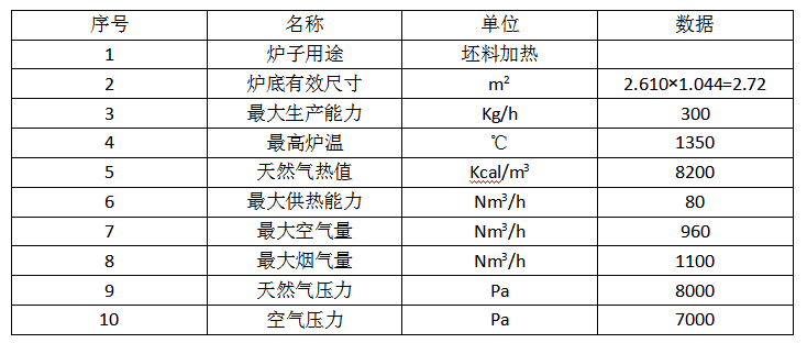 表1 推桿式鍛造加熱爐技術(shù)參數(shù)