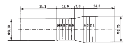 隔熱耐火復合磚的砌筑部位見圖1。第1部位(圖1中的1~4)砌筑在變徑前,里端距窯口的距離為24.3m,砌筑長度為8m,第2部位(圖1中的5-10段)砌筑在變徑后,外端距窯口的長度為31.3m,砌筑長度為12m。