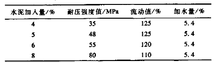 表3 水泥加入量對指標(biāo)的影響
