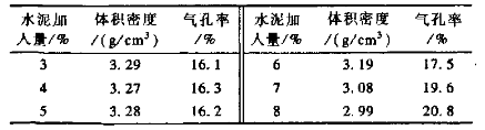 表4 水泥加入量對體密和氣孔率的影響