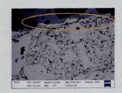 圖3 氣化爐高鉻磚受熔渣侵蝕滲透狀況