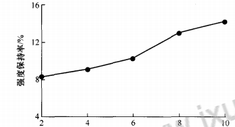 (2)隨著水泥加入量的增加,1100℃水冷3次熱震后,1560℃燒后試樣的強度保持率逐漸增加,抗熱震性得到改善,水泥加入質量分數為10%時抗熱震性最好。