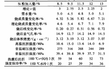 (3) 當Si粉加入量為9.5%時,材料具有較高的強度,較低的氣孔率,良好的熱震穩定性以及合適的燒后線變化率。