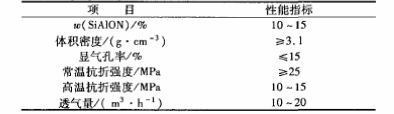 表4 試制的SiAlON結合剛玉質透氣磚的主要性能指標