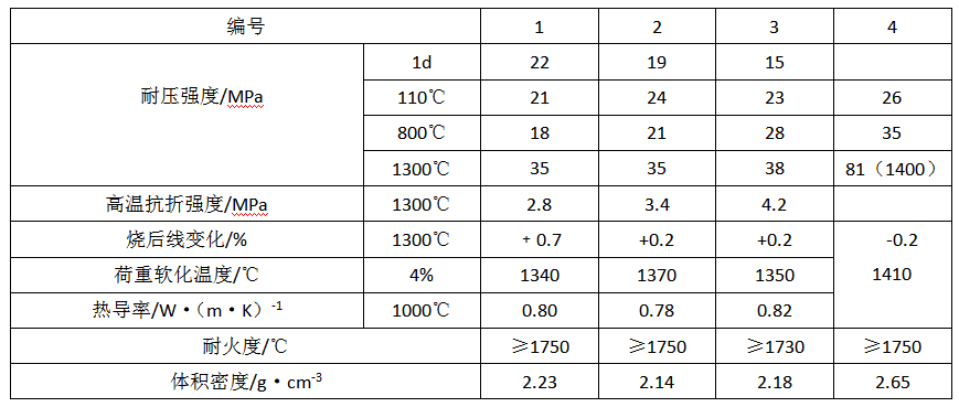 表1 耐火噴涂料重質材料的主要性能