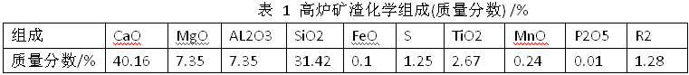本次實驗選用的礦渣是由某鋼廠提供的高爐礦渣原料,其主要成分如表 1 所示。將礦渣破碎研磨成粉,用磁鐵去除礦渣粉末中可能存在的鐵成分,再在 95 ℃烘箱中干燥 2 h 后,取出備用。