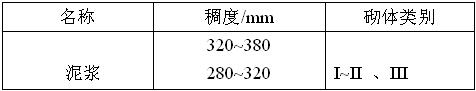 耐火泥漿調(diào)制的一般規(guī)定應(yīng)根據(jù)砌體類別,通過試驗(yàn)確定泥漿的稠度和液體加入量,同時(shí)檢查泥漿的砌筑性能(粘結(jié)時(shí)間)是否滿足砌筑要求。泥漿的粘結(jié)時(shí)間視耐火制品的材質(zhì),外形尺寸的大小而定,宜為不大于2min為合適。不同泥漿選用的目數(shù)和稠度應(yīng)根據(jù)砌體的類別按下表選定。