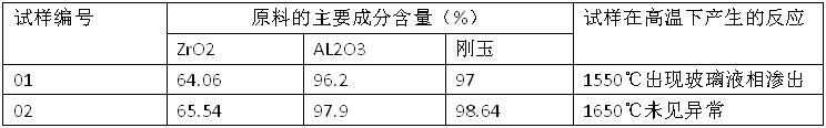參照大型浮法玻璃熔窯全保溫后使用耐火材料的性能要求和使用條件,對已有燒結(jié)AZS磚在熔窯的使用情況與損毀原因所作的分析。綜合考慮認為、:可長期用在保溫熔窯尺度溫度使用的高級燒結(jié)AZS磚,應(yīng)形成斜鋯石、莫來石和剛玉共生的晶相結(jié)構(gòu),并嚴格限制比例相量,按照這樣的認識,設(shè)定了形成所需晶相的材料組成成分,進行配方設(shè)計。在實際生產(chǎn)中還須嚴格注意對原料的純度要求。雜質(zhì)的存在,尤其R2O成分的存在,不僅影響ZrSiO4的分解,而且還影響分解后產(chǎn)物的反應(yīng)與新形成的物相結(jié)構(gòu),易形成玻璃相。所以雜質(zhì)含量稍有增加即對產(chǎn)品性能產(chǎn)生顯著影響(如表1)