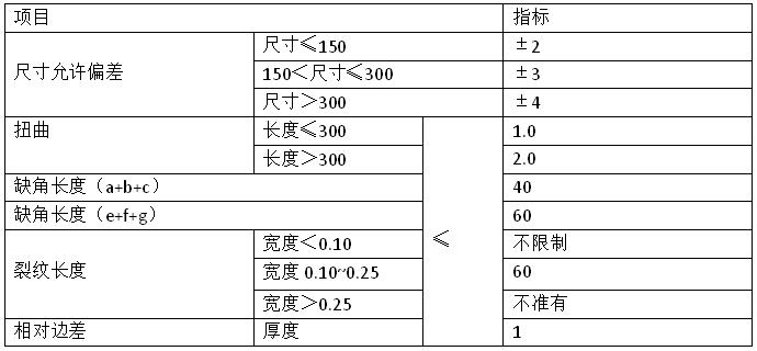 4.2 活性石灰回轉窯用不燒磷酸鹽磚的尺寸偏差及外觀應符合表2的規定