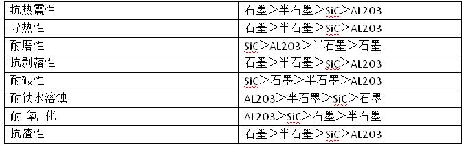 碳化硅爐眼磚的優點材質選擇及其性能:按出鐵口的特性要求,對常用的幾種耐火材料進行比較如下: