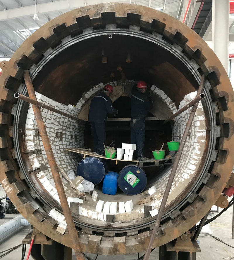 ①在環(huán)境溫度和使用溫度下均有足夠的力學(xué)強度:窯的金屬殼體并不是完全剛性的,加上窯的橢圓度過大的影響,窯在轉(zhuǎn)動中窯體特別是輪帶部位發(fā)生或大或小的變形,在窯襯內(nèi)導(dǎo)致壓、拉和剪應(yīng)力,加上耐火材料相互間持續(xù)出現(xiàn)的相對位移和局部應(yīng)力,導(dǎo)致材料的開裂、剝落甚至脫落:窯襯在加熱、冷卻過程中產(chǎn)生溫差應(yīng)力,也能導(dǎo)致材料的開裂和剝落:還有化學(xué)侵蝕形成某些新礦物,產(chǎn)生體積變化,在材料內(nèi)產(chǎn)生新的機械應(yīng)力:以上種種情況要求耐火材料在常溫和高溫下有足夠的強度,才能正常使用。
